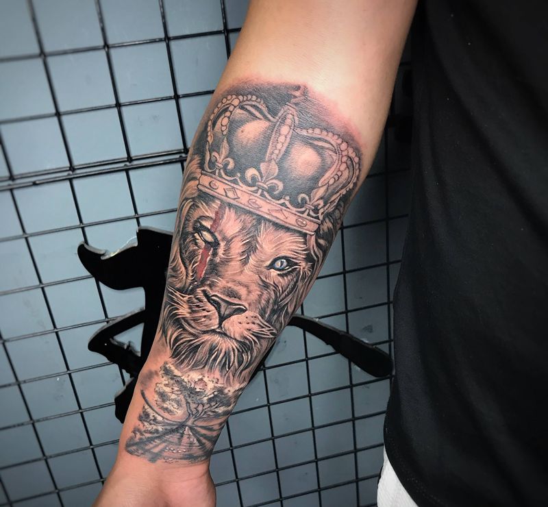 当前位置: 首页 >四川省内江市纹身店-内江零玖刺青纹身图案>狮子纹身图片_手臂纹身图案