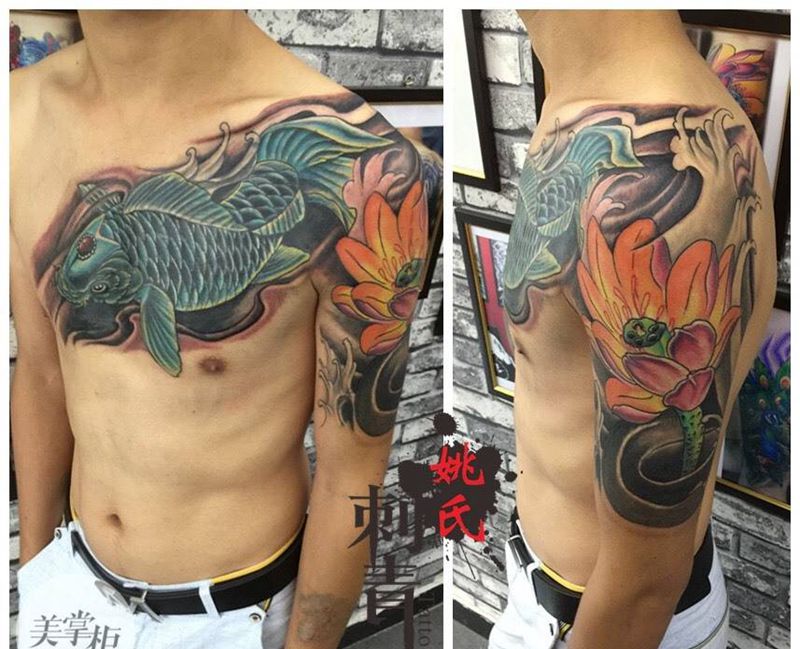 一组15张莲花纹身手