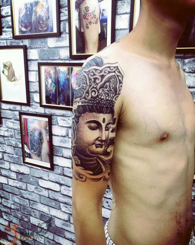 半甲全佛过程!!纹身图片_传统颈部胸部手臂字符人物宗教原创花絮纹身图案