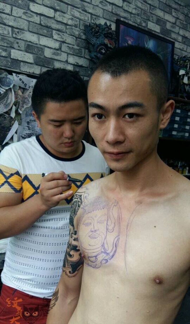 半甲全佛过程!!纹身图片_传统颈部胸部手臂字符人物宗教原创花絮纹身图案