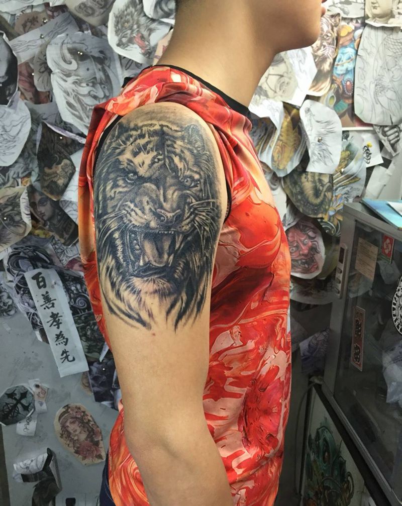 当前位置: 首页 >四川省内江市纹身店-内江零玖刺青纹身图案>大臂虎头恢复前后纹身图片