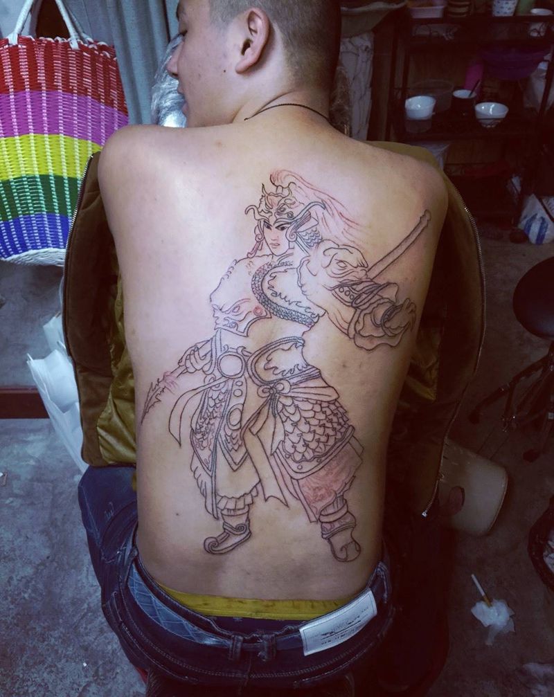 当前位置: 首页 >四川省内江市纹身店-内江零玖刺青纹身图案>满背赵子龙主体勾线完成纹身图片