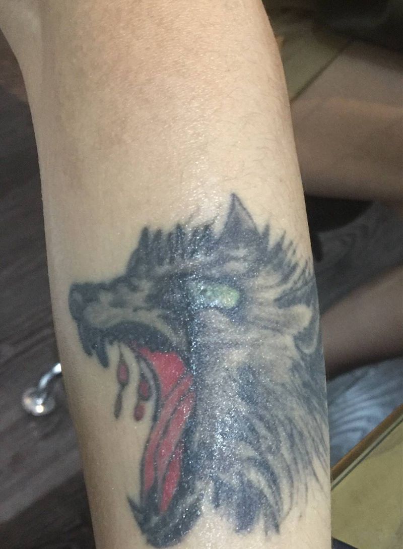 当前位置: 首页 >四川省内江市纹身店-内江零玖刺青纹身图案>原创设计遮盖神兽滴血狼头纹身图片_成品欧美动物遮盖纹身图案