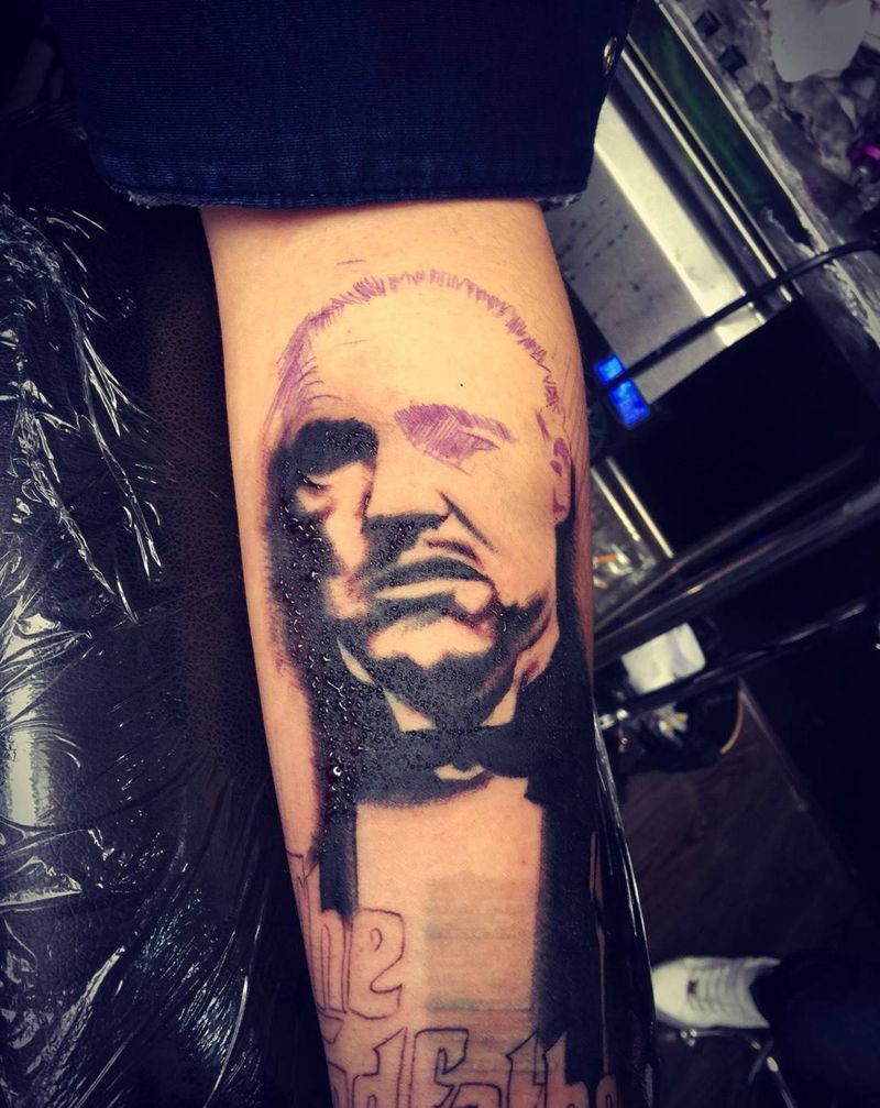 当前位置: 首页 >四川省内江市纹身店-内江零玖刺青纹身图案>小臂内侧教父纹身纹身图片