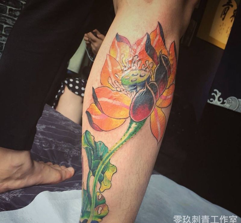 • T网红王老大花腿龙纹身图片_腿部新传统纹身图案