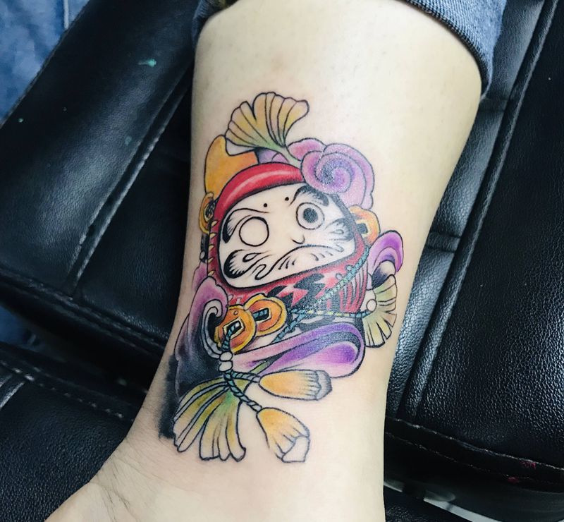 • T包小腿吹火男+阿多福纹身图片_腿部老传统新传统吹火男阿
