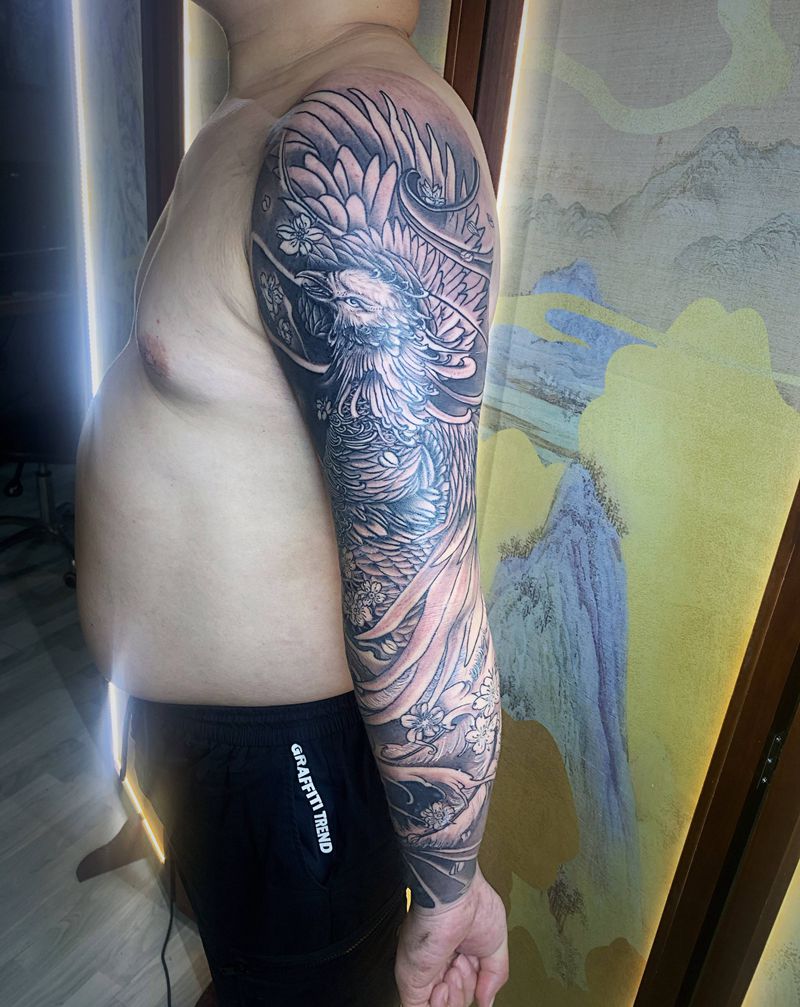 当前位置: 首页 >四川省南充市纹身店-coco纹身馆纹身图案>凤凰纹身图片_手臂纹身图案