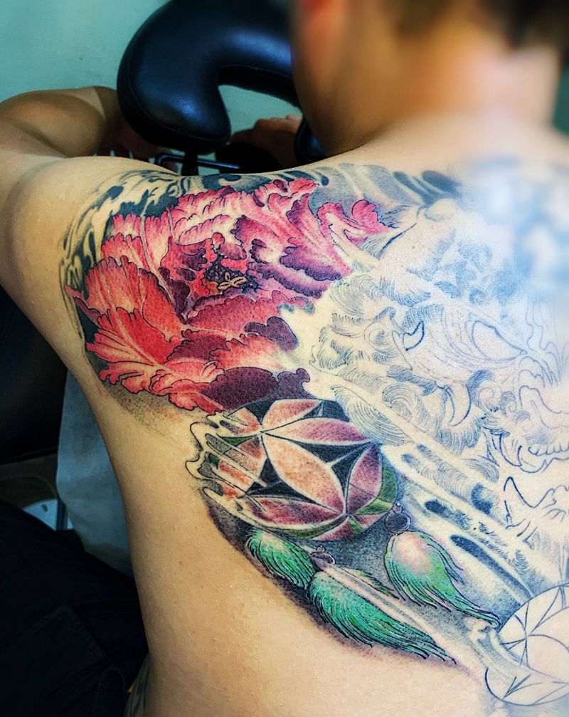 • 女性大花胸纹身_43张霸气漂亮的女性大花胸纹身图案作品