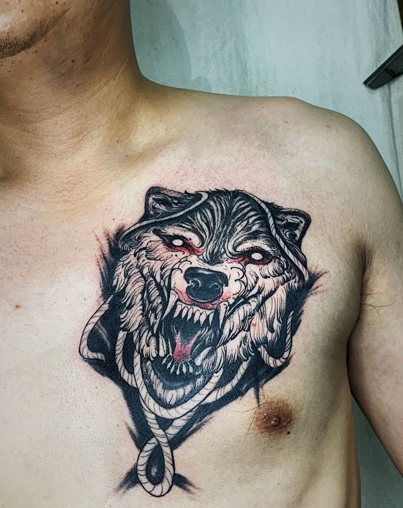 狼纹身图片_胸部纹身图案