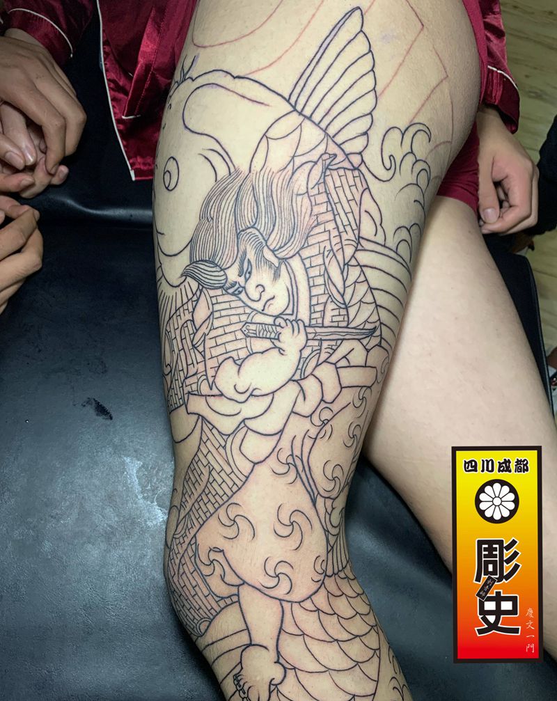 • T网红王老大花腿龙纹身图片_腿部新传统纹身图案