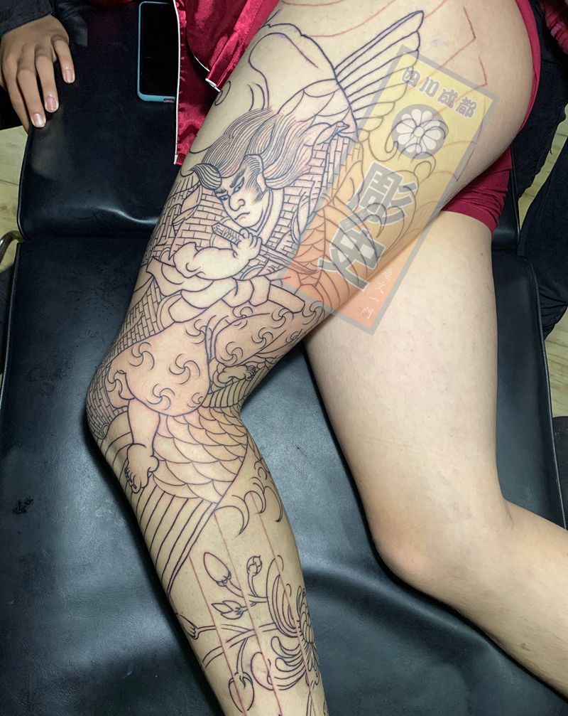 • T网红王老大花腿龙纹身图片_腿部新传统纹身图案