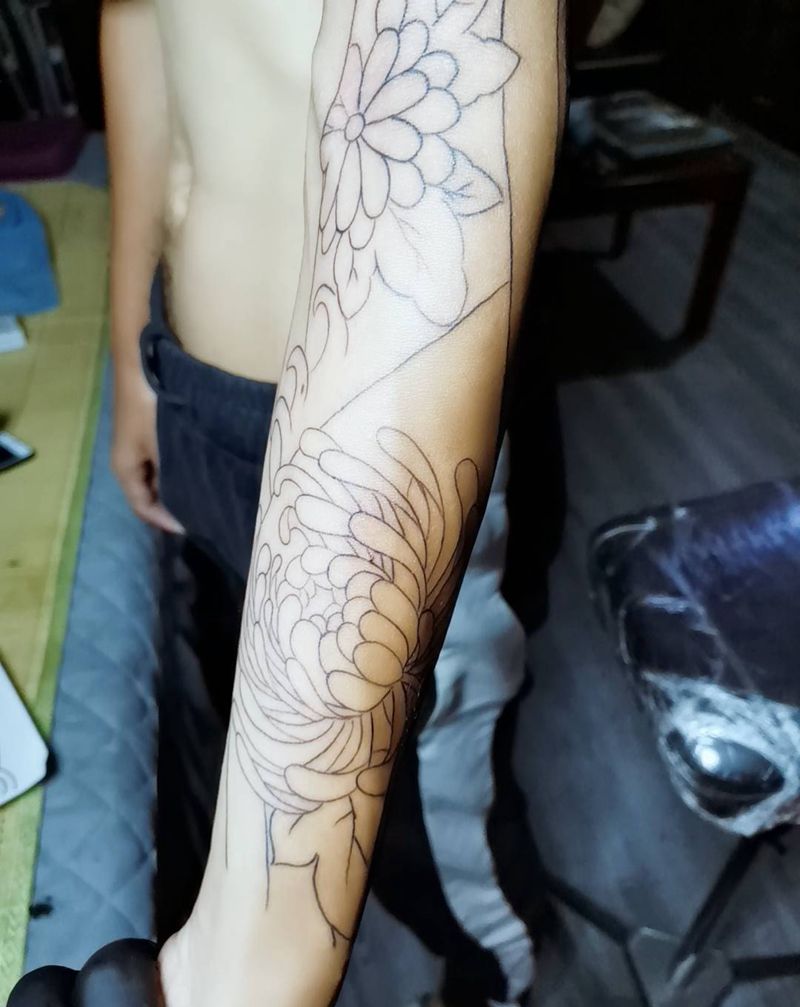 当前位置: 首页 >四川省广元市纹身店-生竹刺青纹身图案>花臂线条纹身图片_手臂老传统纹身图案
