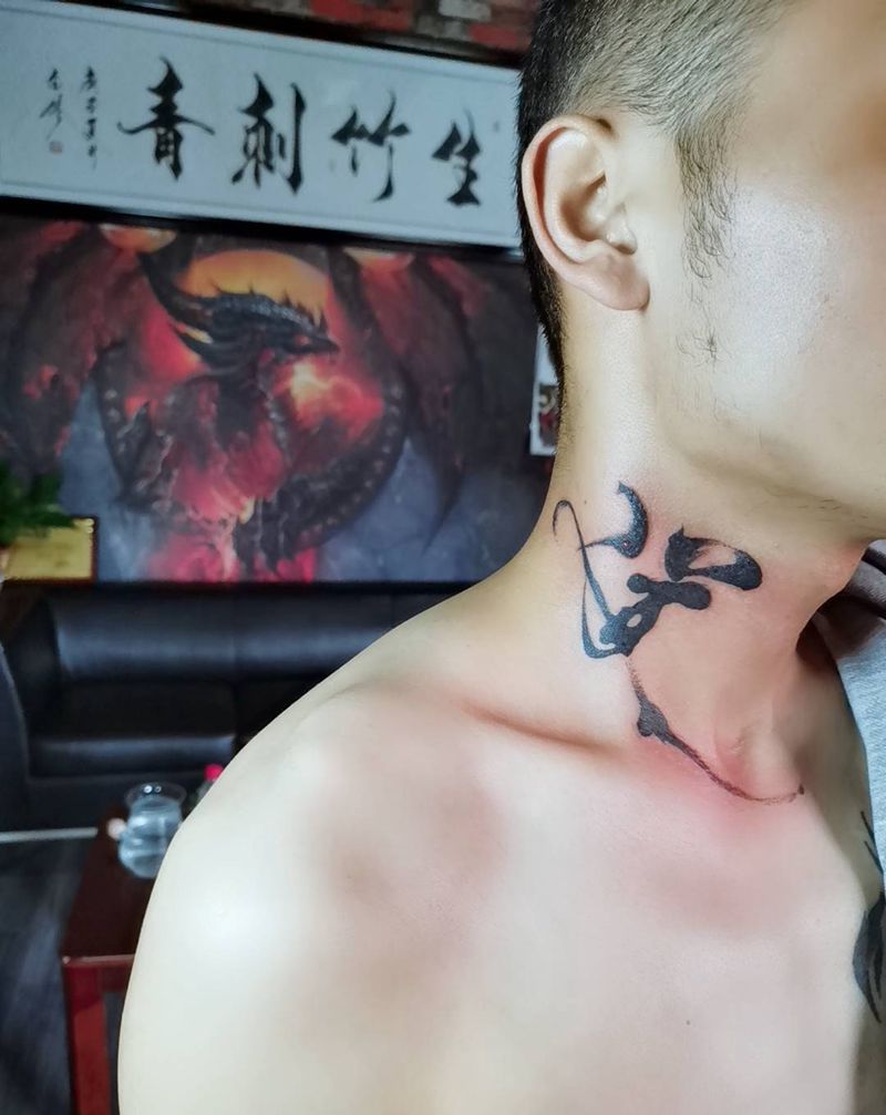 道纹身图片_颈部水墨纹身图案