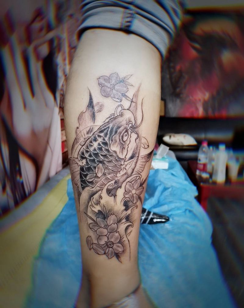 小腿鲤鱼纹身图片_新传统纹身图案