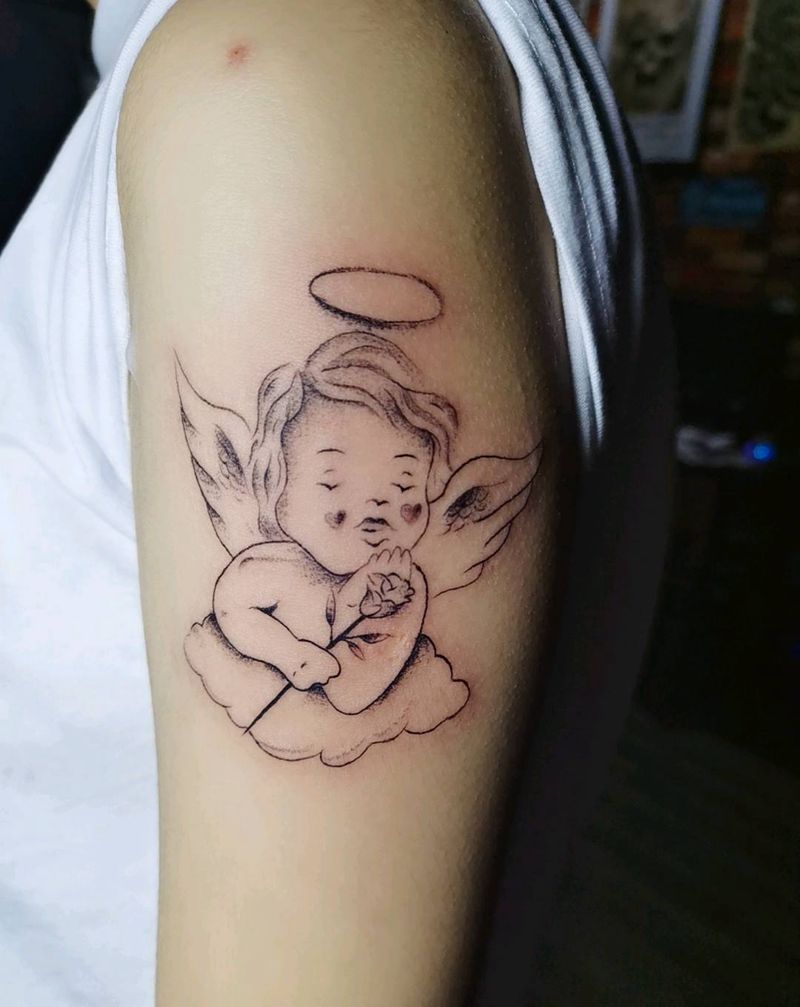 当前位置: 首页 >四川省广元市纹身店-生竹刺青纹身图案>小天使纹身图片_手臂纹身图案