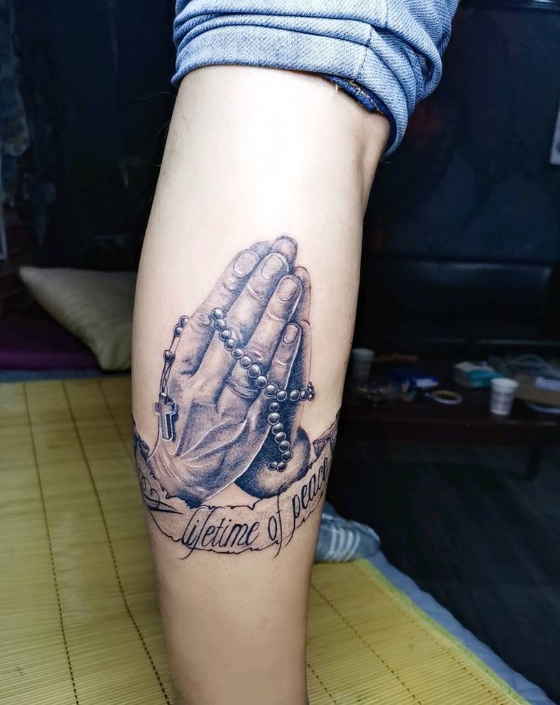 祈祷之手纹身图片_腿部欧美写实纹身图案