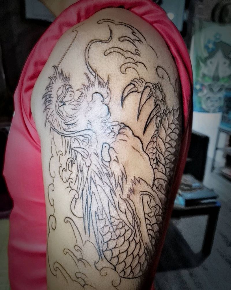 当前位置: 首页 >四川省广元市纹身店-生竹刺青纹身图案>半臂龙线条纹身图片_手臂新传统纹身图案