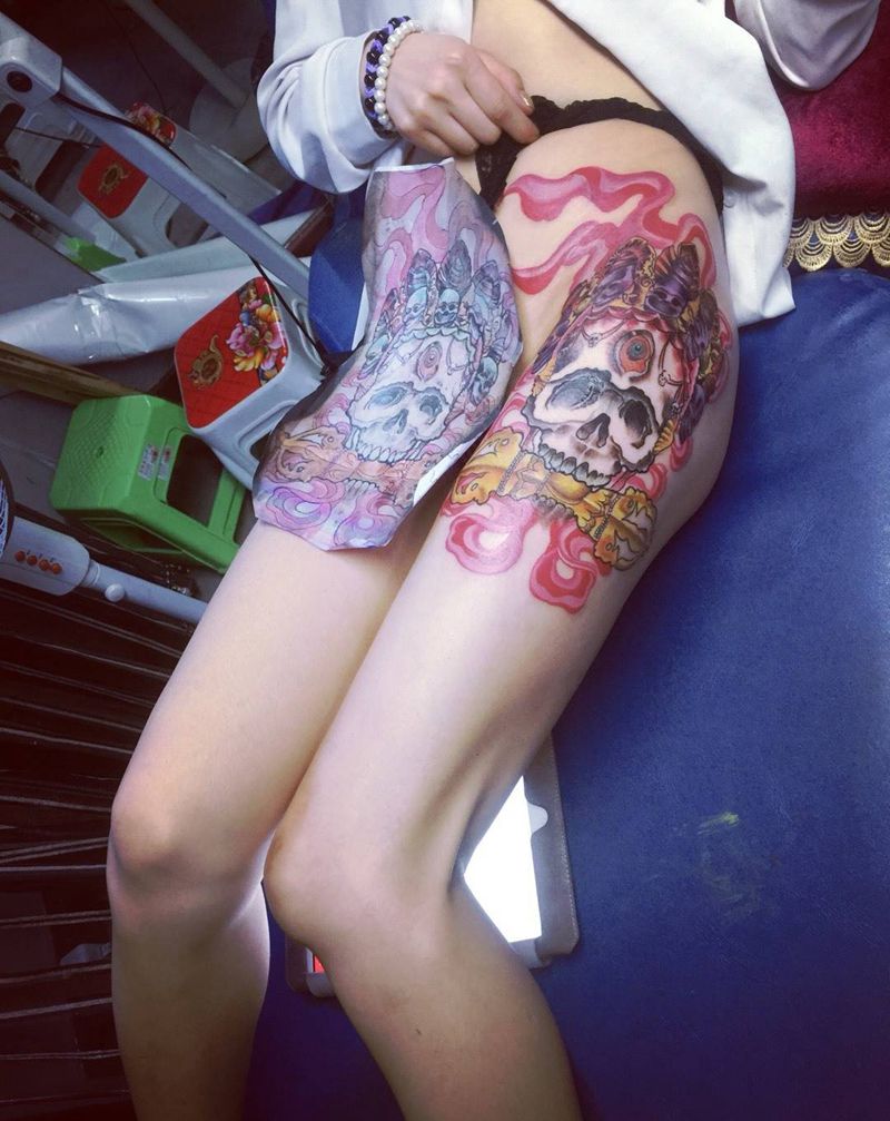 • T网红王老大花腿龙纹身图片_腿部新传统纹身图案