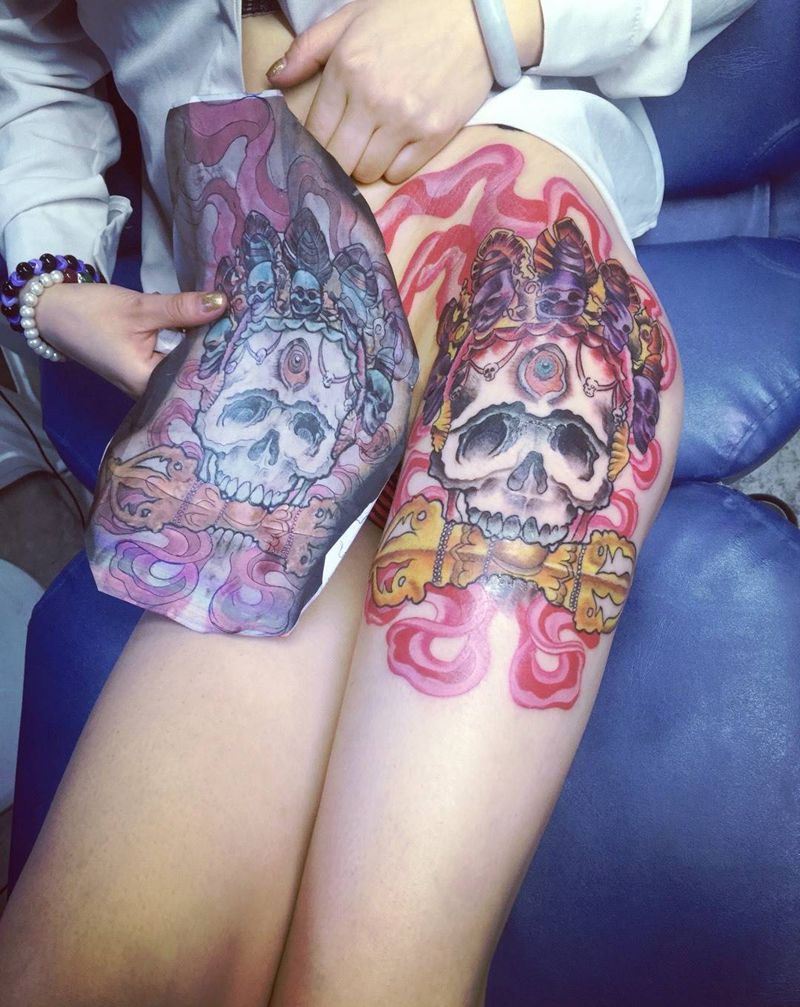 • T网红王老大花腿龙纹身图片_腿部新传统纹身图案