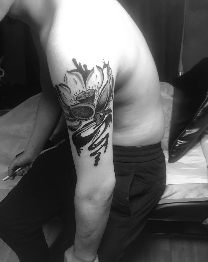 当前位置: 首页 >四川省南充市纹身店-南充独绣堂刺青纹身图案>大臂水墨莲花纹身图片