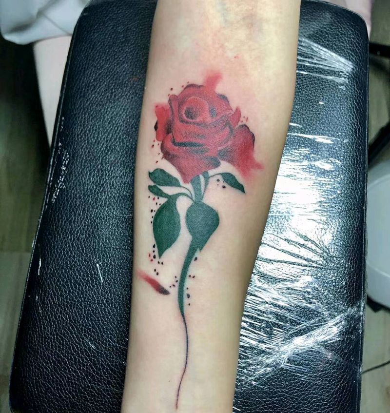 水彩玫瑰纹身图片_手臂水彩纹身图案