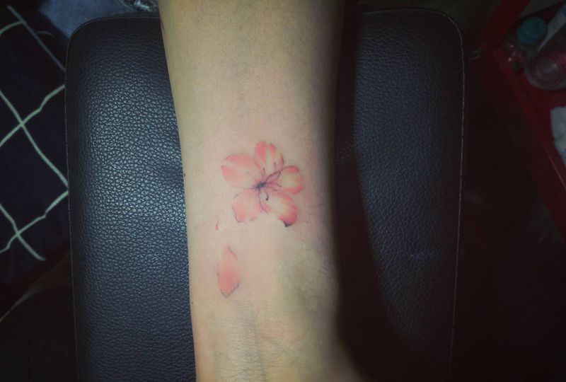 当前位置: 首页 >四川省南充市纹身店-大漠刺青纹身图案>小樱花纹身图片_手臂水彩纹身图案