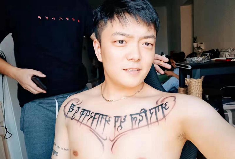 藏文花胸(自添加)纹身图片_胸部纹身图案