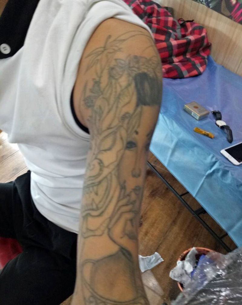 当前位置: 首页 >四川省南充市纹身店-大漠刺青纹身图案>旧纹身添加纹身图片_手臂传统鬼神成品纹身图案