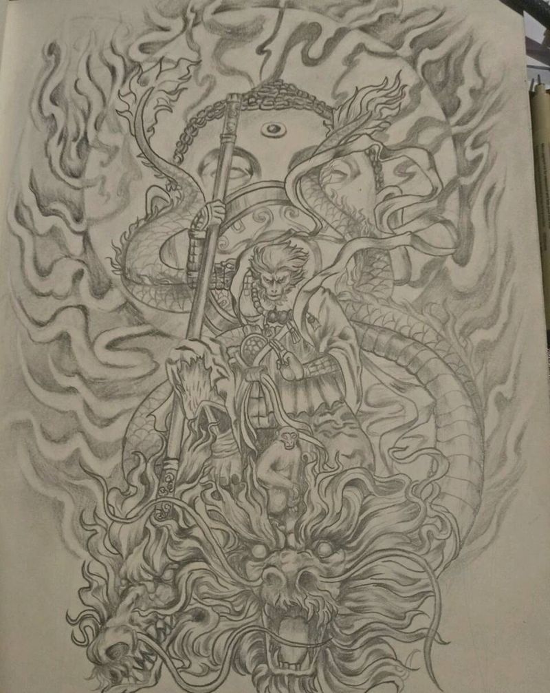 悟空纹身图片_背部传统人物鬼神原创成品纹身图案