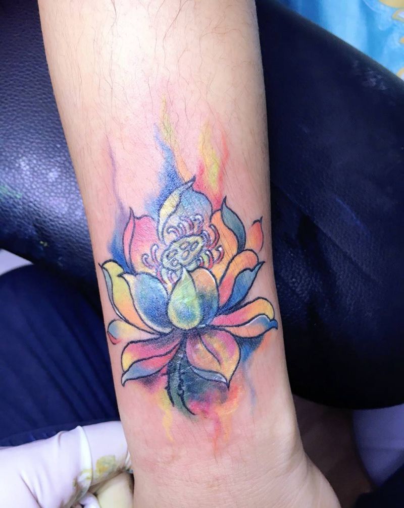 一组15张莲花纹身手