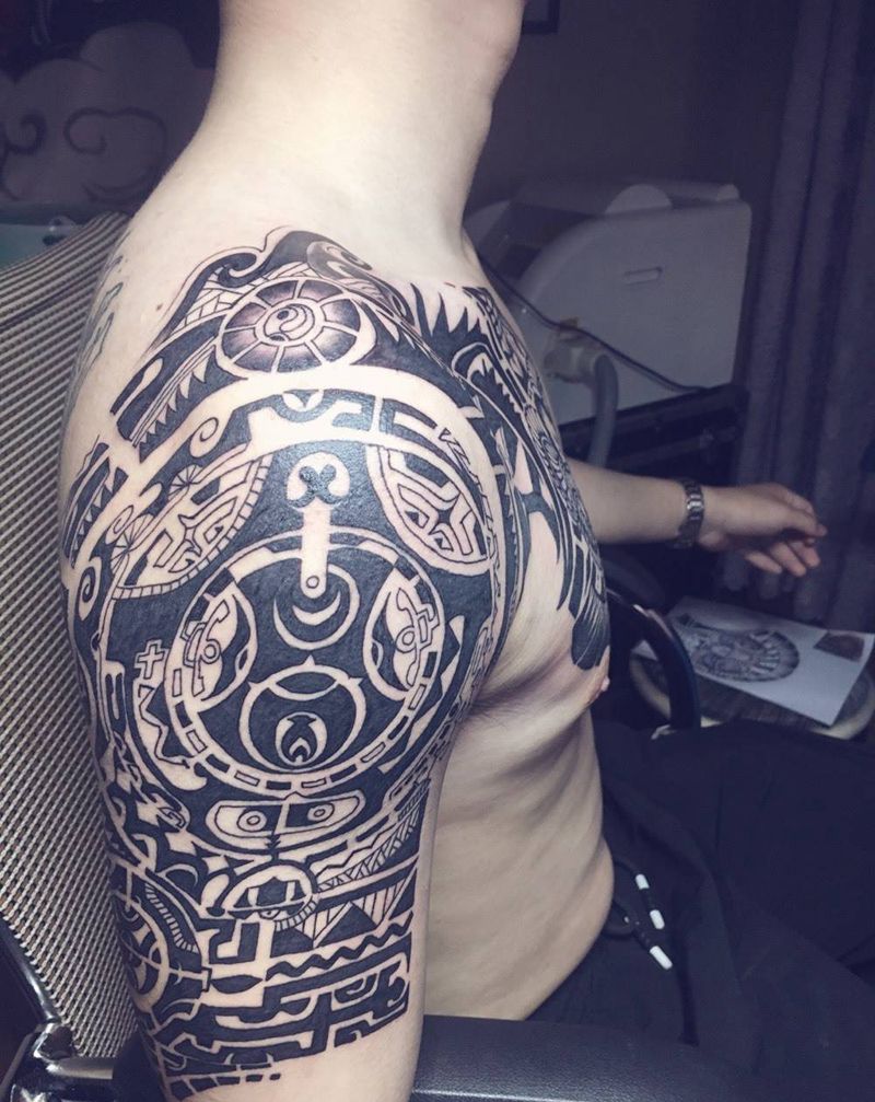 当前位置: 首页 >四川省南充市纹身店-墨艺纹身工作室纹身图案>玛雅图腾半甲纹身图片