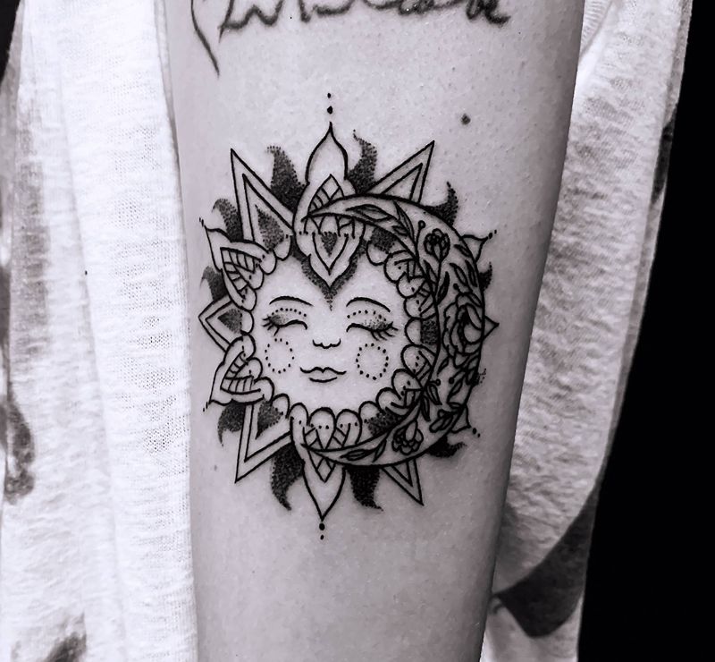 点刺小太阳纹身图片_手臂点刺纹身图案