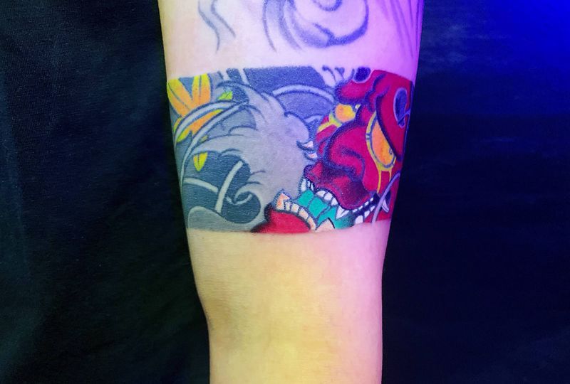 当前位置: 首页 >四川省乐山市纹身店-蛊彫刺青铺纹身图案>客人自带臂环手稿纹身图片_手臂新传统老传统纹身图案