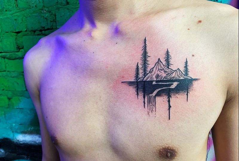 当前位置: 首页 >四川省乐山市纹身店-蛊彫刺青铺纹身图案>清新山水纹身图片_胸部纹身图案