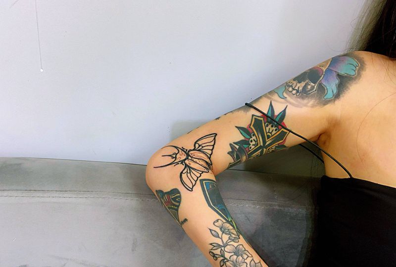 当前位置: 首页 >四川省乐山市纹身店-蛊彫刺青铺纹身图案>Old school 花臂纹身图片_手臂Old School纹身图案