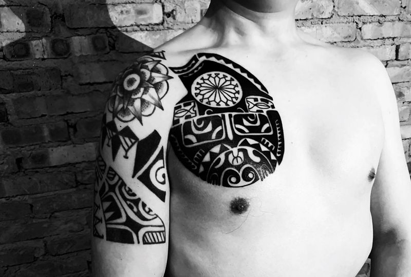 纹了两年的图腾纹身图片_胸部背部图腾纹身图案