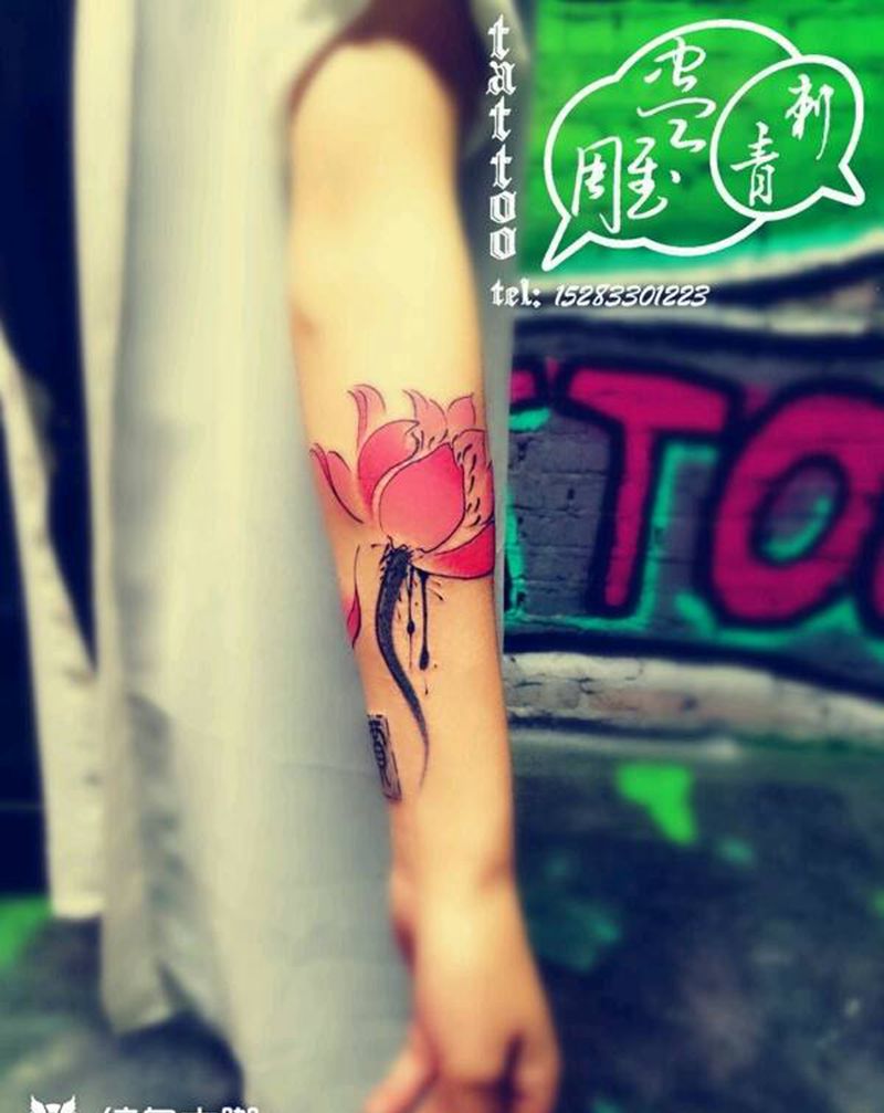 当前位置: 首页 >四川省乐山市纹身店-蛊彫刺青铺纹身图案>莲8纹身图片_手臂传统清新国画植物成品纹身图案