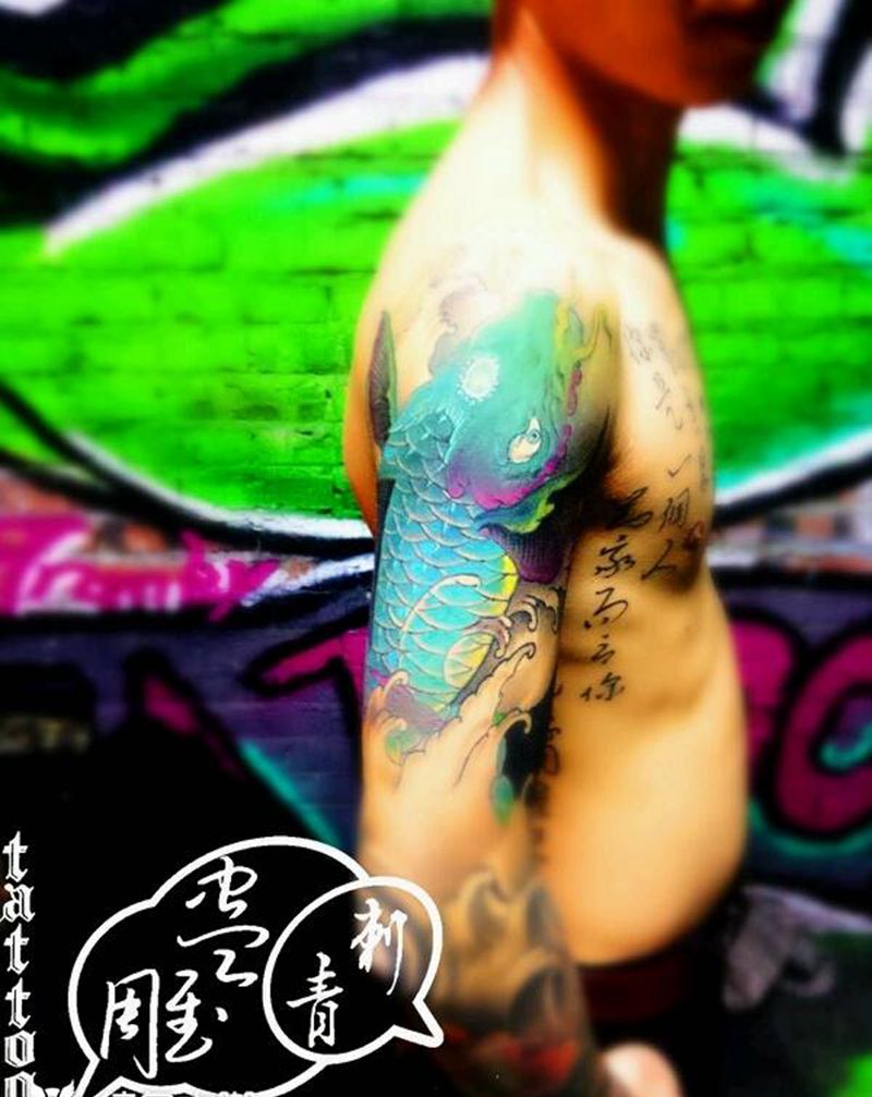 当前位置: 首页 >四川省乐山市纹身店-蛊彫刺青铺纹身图案>重彩鲤鱼花臂纹身图片