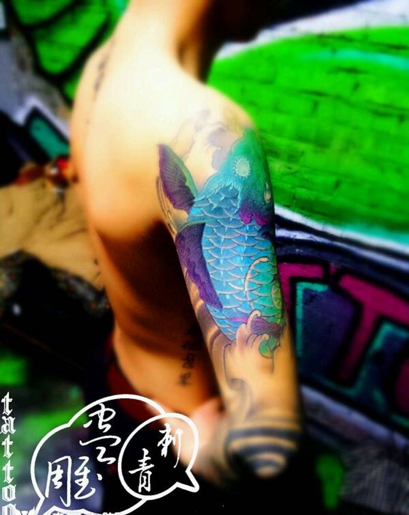当前位置: 首页 >四川省乐山市纹身店-蛊彫刺青铺纹身图案>重彩鲤鱼花臂纹身图片