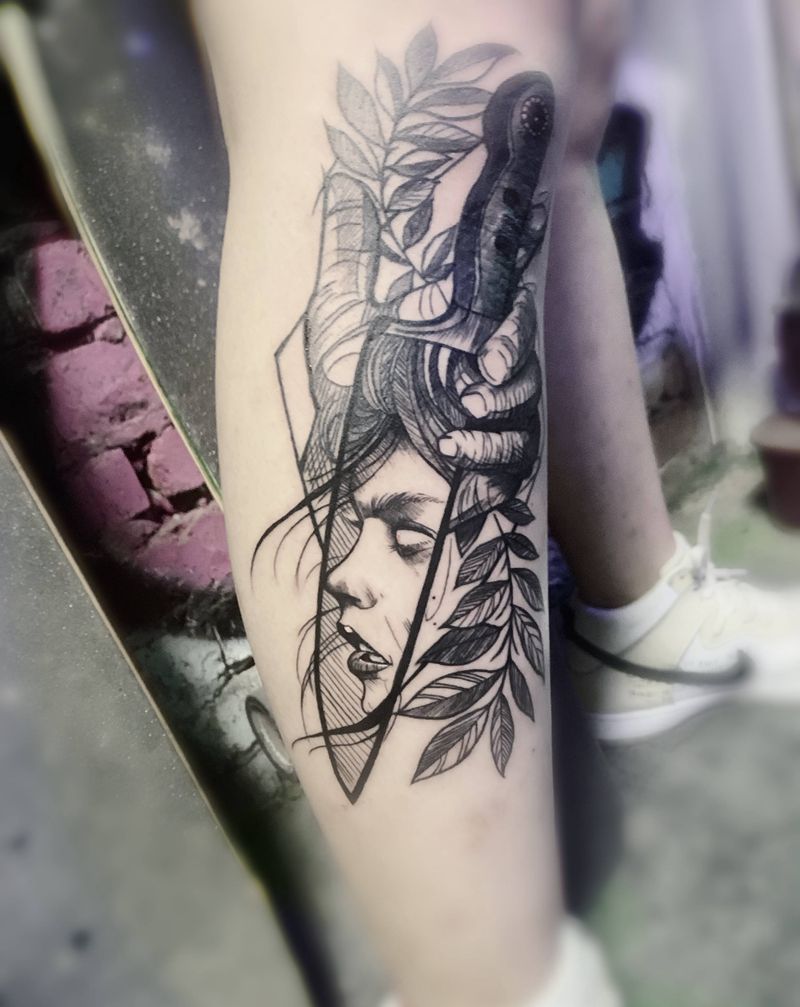纹身遮盖纹身图片_腿部欧美写实纹身图案