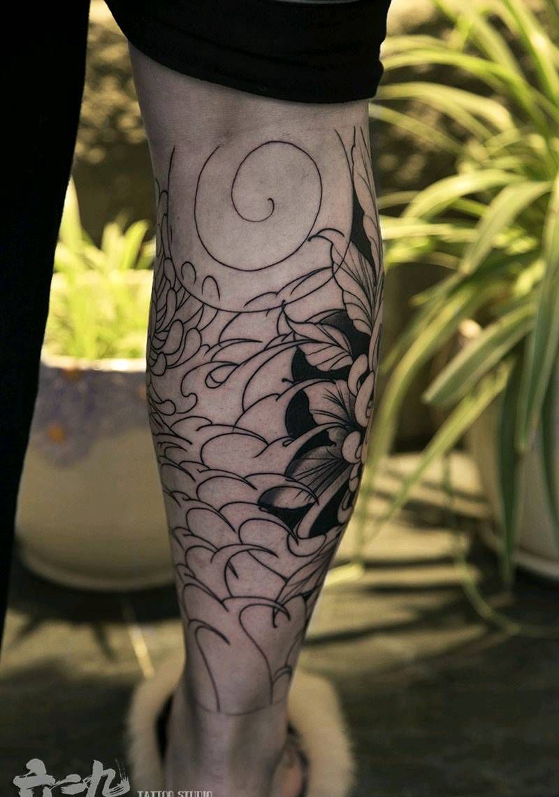 日式传统包小腿未完成纹身图片_腿部纹身图案