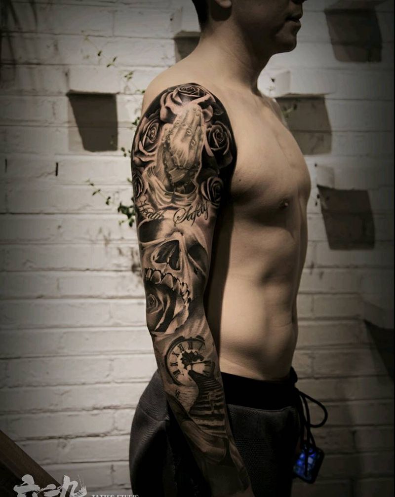 欧美拼接花臂·徐唯空作品纹身图片_手臂手部欧美成品纹身图案