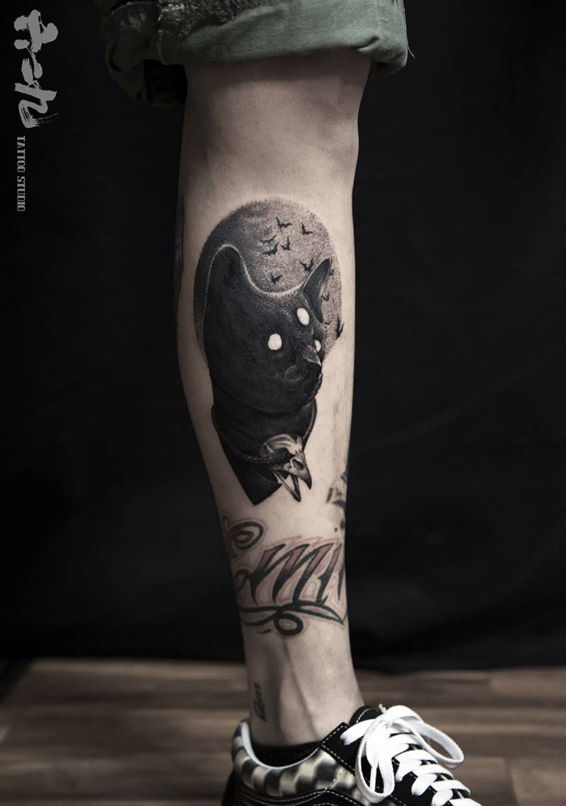 • T网红王老大花腿龙纹身图片_腿部新传统纹身图案