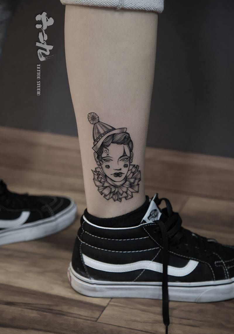 当前位置: 首页 >四川省眉山市纹身店-629纹身工作室纹身图案>线条小丑
