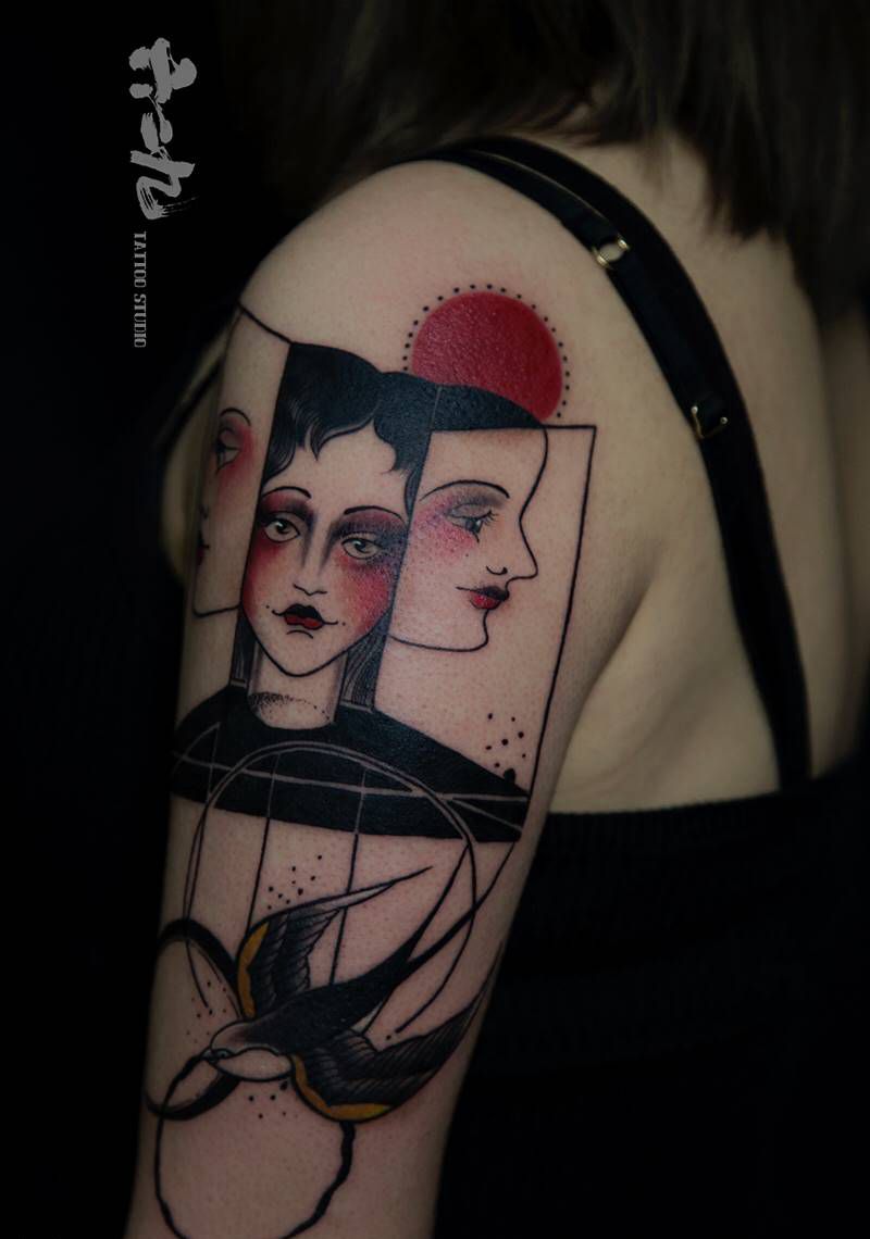 当前位置: 首页 >四川省眉山市纹身店-629纹身工作室纹身图案>多面娇娃纹身图片_手臂Old School纹身图案