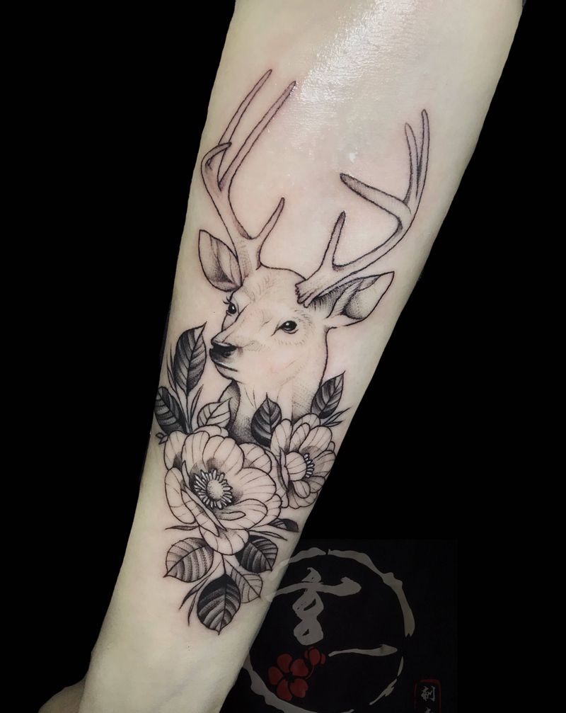 当前位置: 首页 >四川省眉山市纹身店-眉山玄一刺青纹身图案>鹿子纹身图片_手臂纹身图案