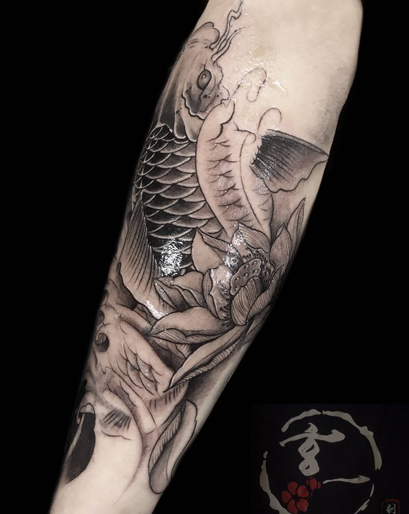 鲤鱼遮盖纹身图片_手臂纹身图案