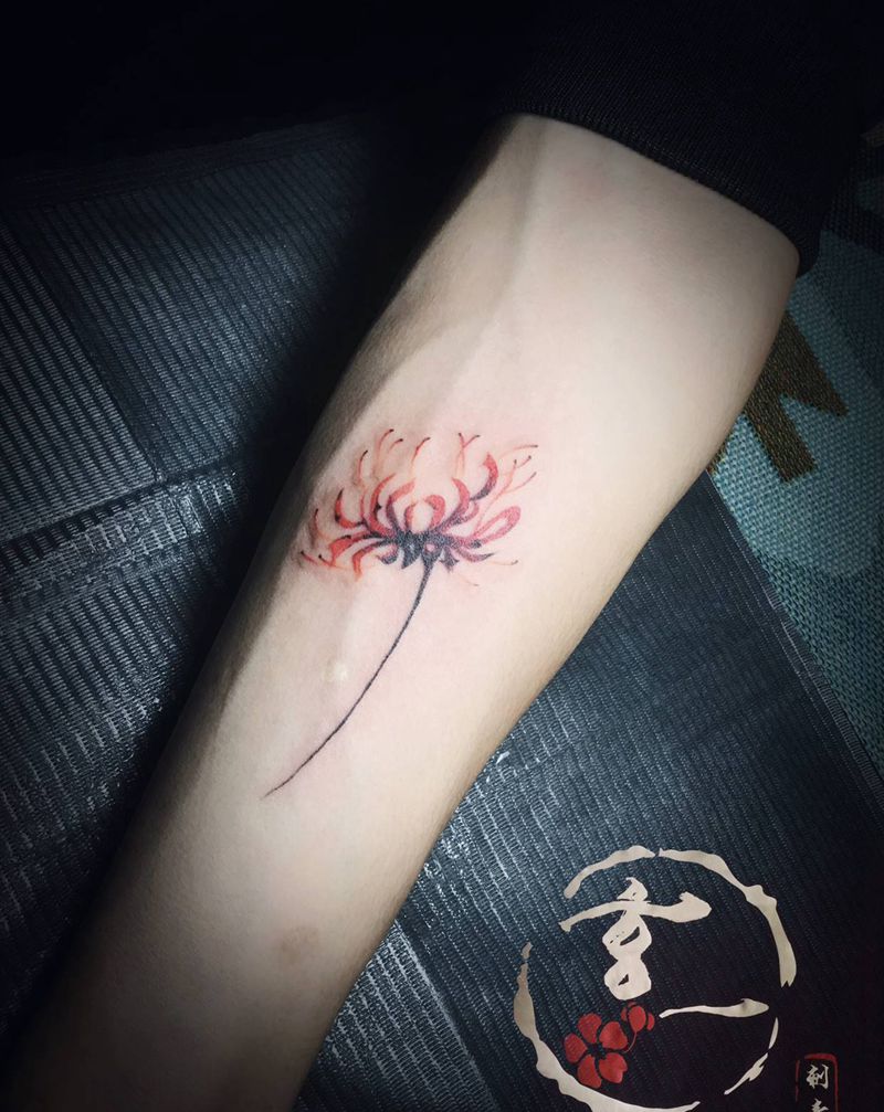 当前位置: 首页 >四川省眉山市纹身店-眉山玄一刺青纹身图案>彼岸花纹身图片_手臂纹身图案