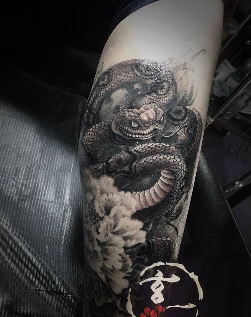• T网红王老大花腿龙纹身图片_腿部新传统纹身图案