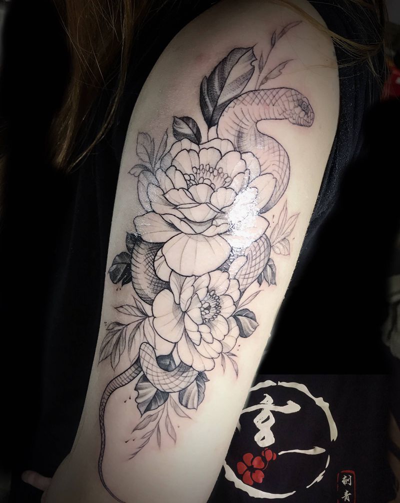 素花蛇纹身图片_手臂纹身图案